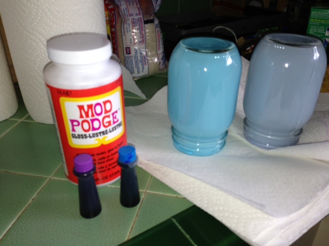 Step 3:  Twist the jar slowly to coat the entire inside with the mod podge/food coloring mixture. You’ll want to do this over the sink or have a bowl underneath to catch the excess liquid.