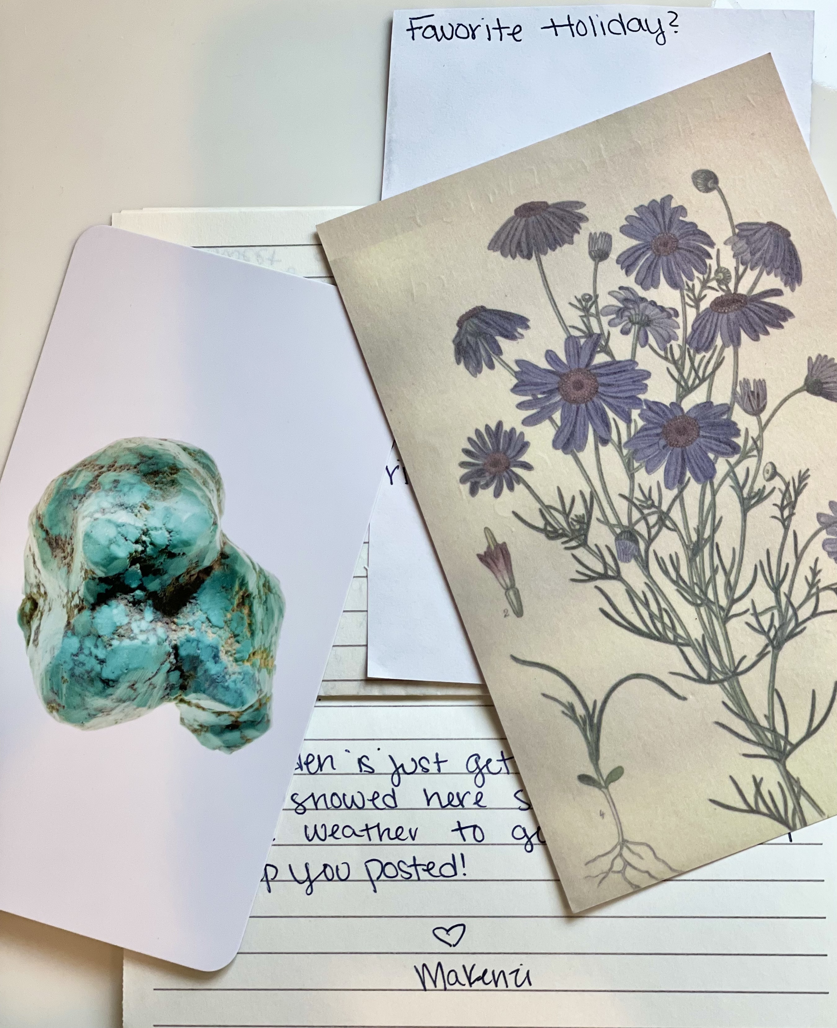 My tip to someone who is just starting out with a pen pal is to be open and playful. I loved that Maggie and I started out with exchanging an “about me” card that asked silly questions we wouldn’t normally think to ask but really helped us get to know each other. By being open to answering questions (especially silly or playful ones) you can find things you have in common or maybe find out something about them that you want to learn more about.